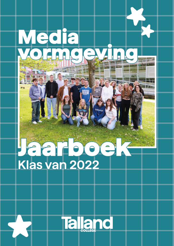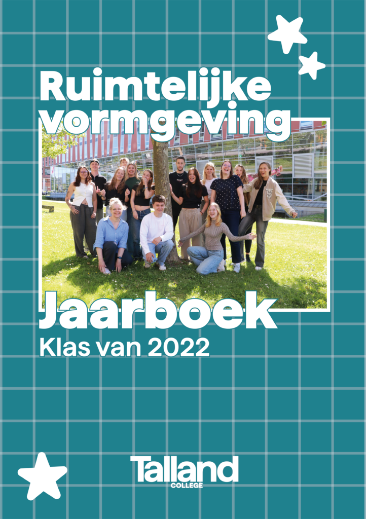 Een derdejaars had het idee om bij de diploma uitreiking een jaarboek te geven aan alle derde jaars studenten. Omdat ik in deze periode op school stage liep is er gevraagd aan mij of ik het jaarboek wou maken. Ik heb in het jaarboek veel van mijn eigen stijl gebruikt samen met de Talland kleuren.