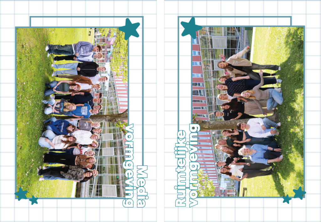 Als je het jaarboek aan de achterkant open slaat start je bij het ruimtelijk vormgeving gedeelte. Dit is hetzelfde design als de voorkant, alleen staat er Ruimtelijke vormgeving en is het een andere foto.