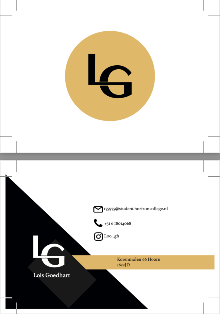 Dit was ook een van onze eerdere opdrachten. Hier hebben we een visite kaartje voor onzelf gemaakt, met een logo waar onze initialen voor zijn gebruikt.
